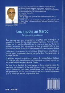 Cet ouvrage est une présentation simplifiée des techniques et procédures fiscales. Il traite des principaux impôts au Maroc à savoir :